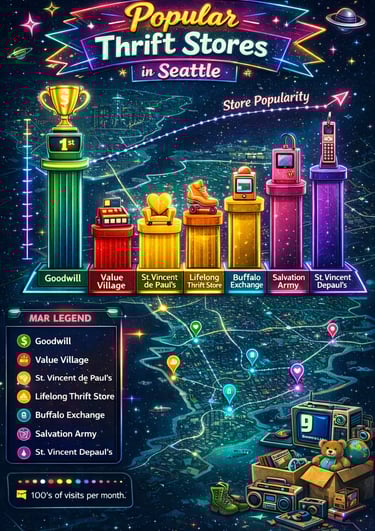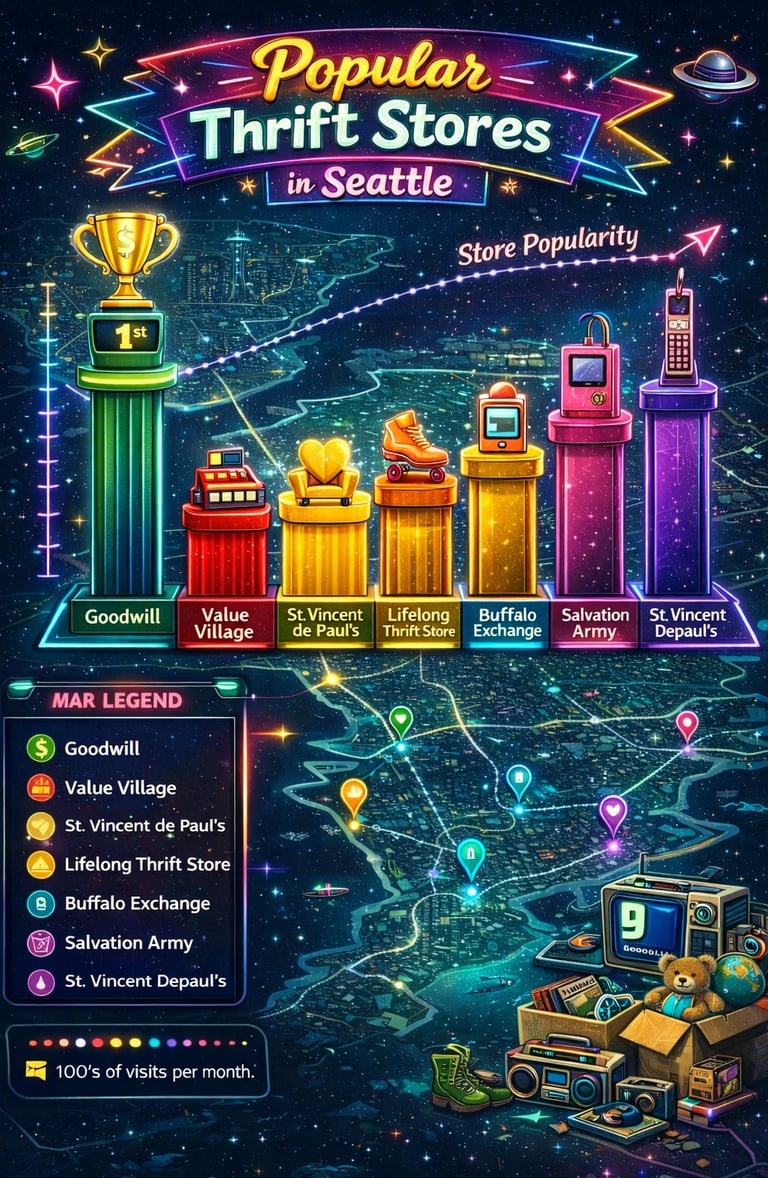 Here is Graph to show you the most popular thrift stores in the Seattle area.